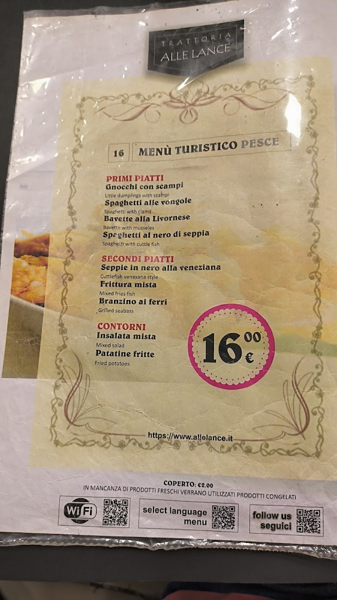 This menu suits both casual dining occasions and more substantial meals, offering set menus at a fixed price that combine multiple courses, including pasta, seafood or meat dishes, and side items. The menu is well-suited for lunch and dinner service, accommodating visitors seeking both quick orders and leisurely meals.
